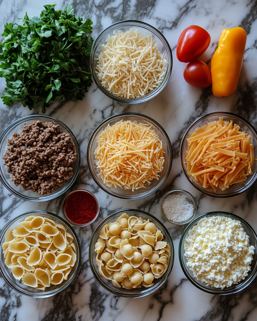 Large pasta shells form the structure of this dish, designed to hold a rich filling. Their curved shape captures the beef and cheese mixture while allowing sauce to coat every bite during baking. Cooking the shells until just tender keeps them intact for stuffing.