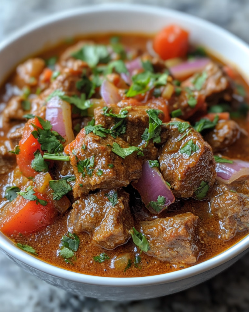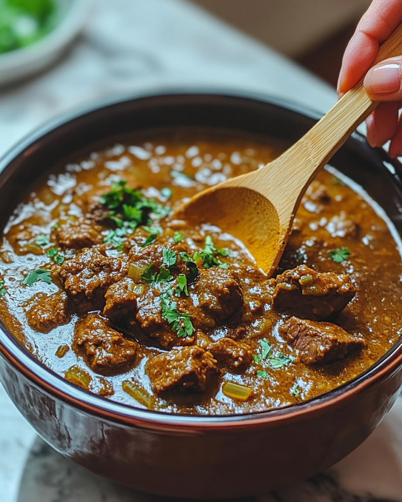 Inspired by traditional Indian cooking, this recipe uses spices like cumin, coriander, turmeric, and garam masala to create authentic flavor. The slow cooker ensures the beef becomes melt-in-your-mouth tender while the sauce develops deep, layered taste. It’s a complete dish that pairs beautifully with rice, naan, or steamed vegetables.