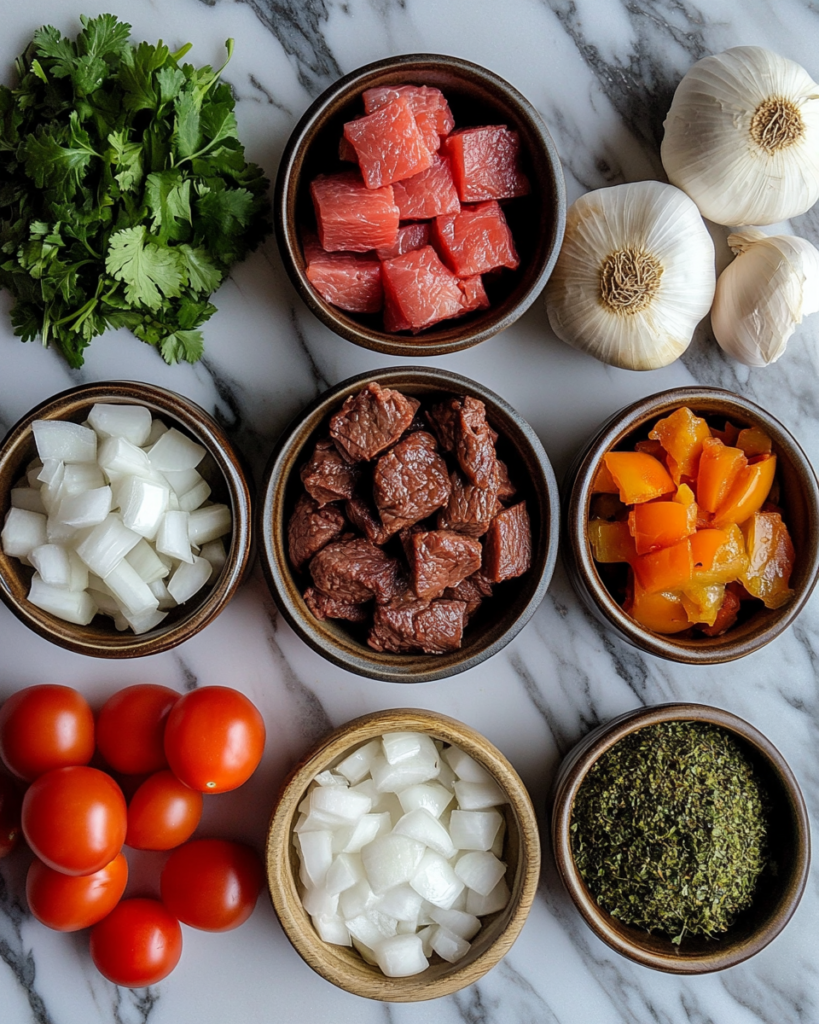 - 1.5 pounds (700 grams) beef stew meat, cut into cubes
