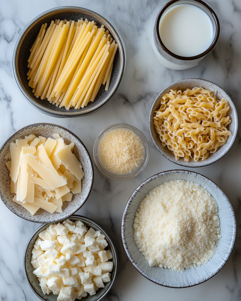 Milk or a mix of milk and cream gives the dish its creamy body. Whole milk works well, but adding a small amount of cream results in a richer texture. Seasonings such as salt, pepper, and a touch of garlic powder bring balance without overpowering the cheese.